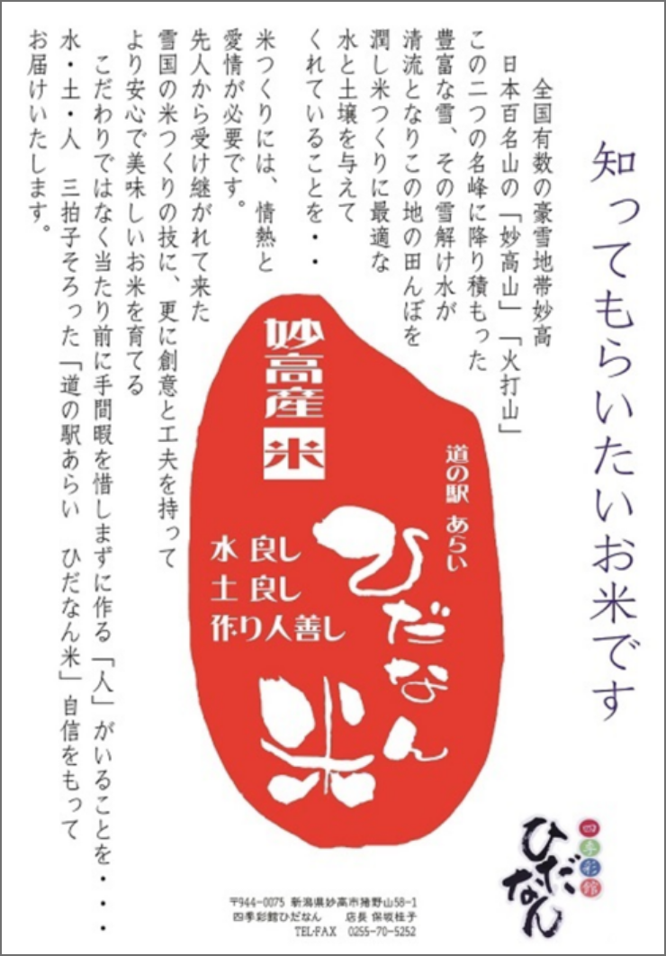 妙高産米と妙高山麓の湧き水、新潟県産大豆を使い、昔ながらの製法を守る太田醸造の「毘沙門越後みそ」を使用。1年間じっくりと天然発酵させたみそのまろやかなコクが楽しめます。